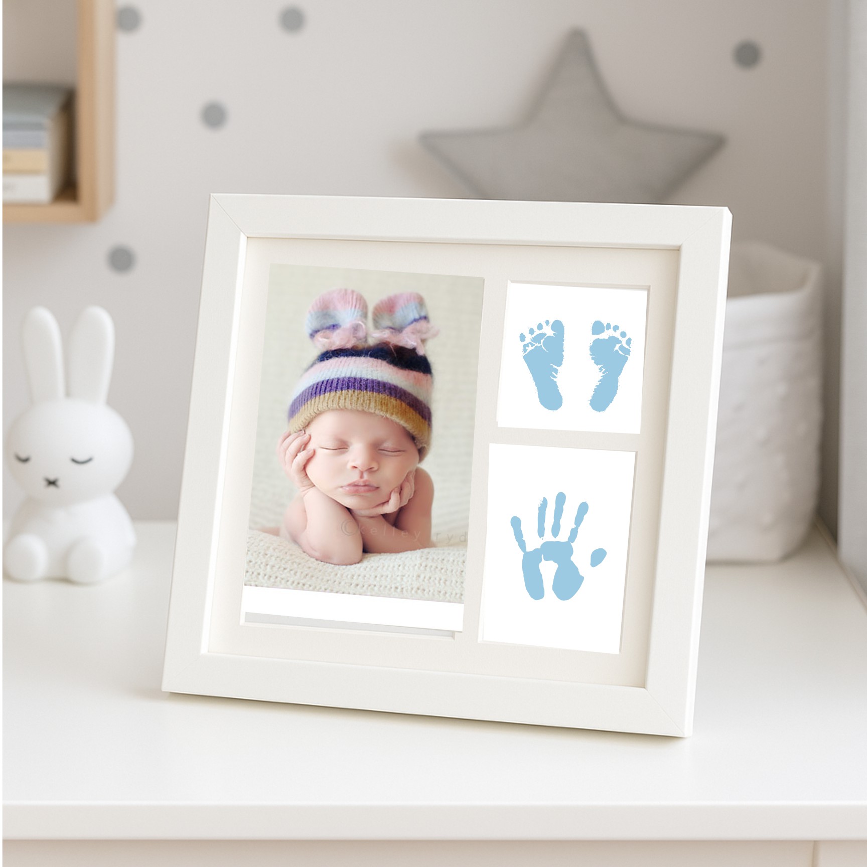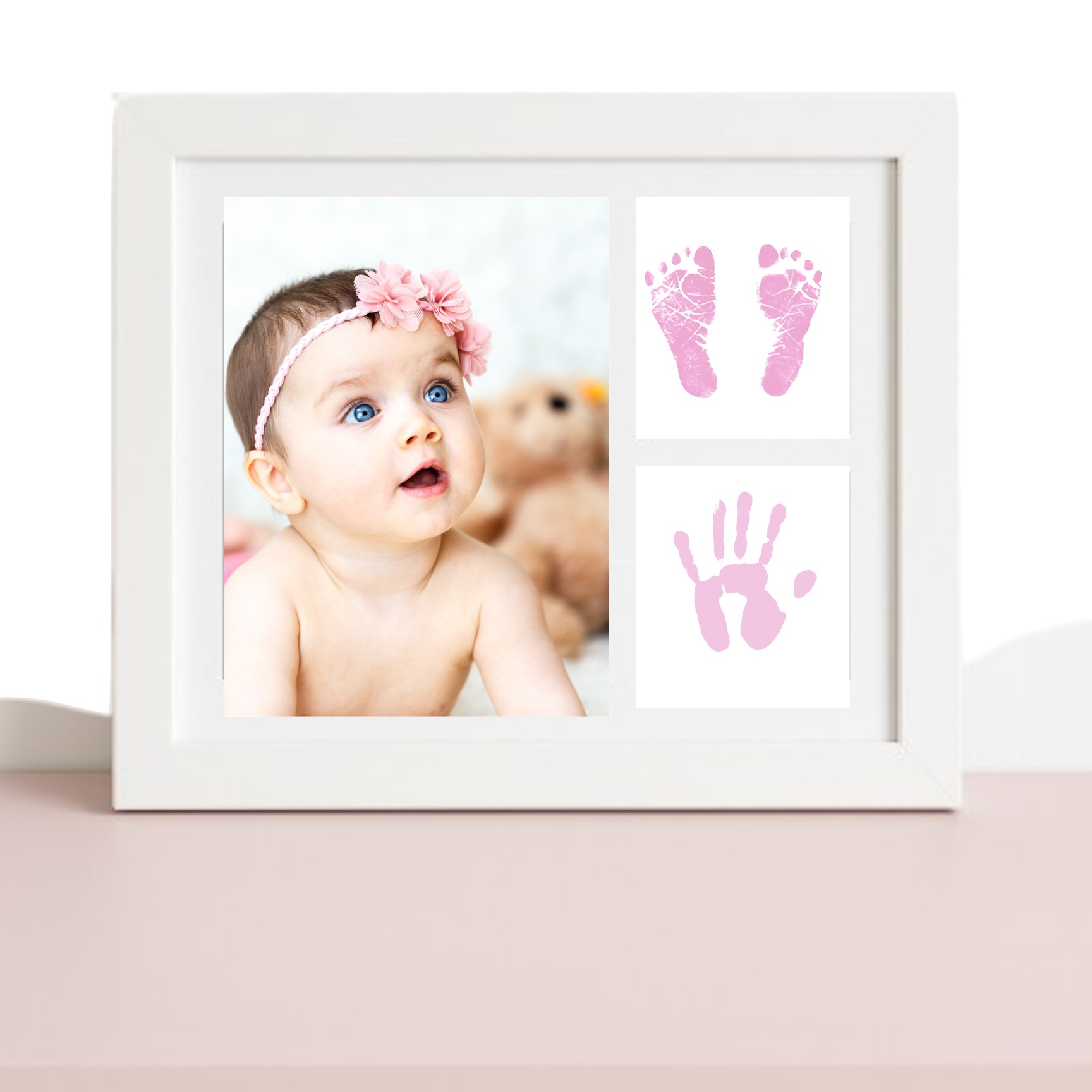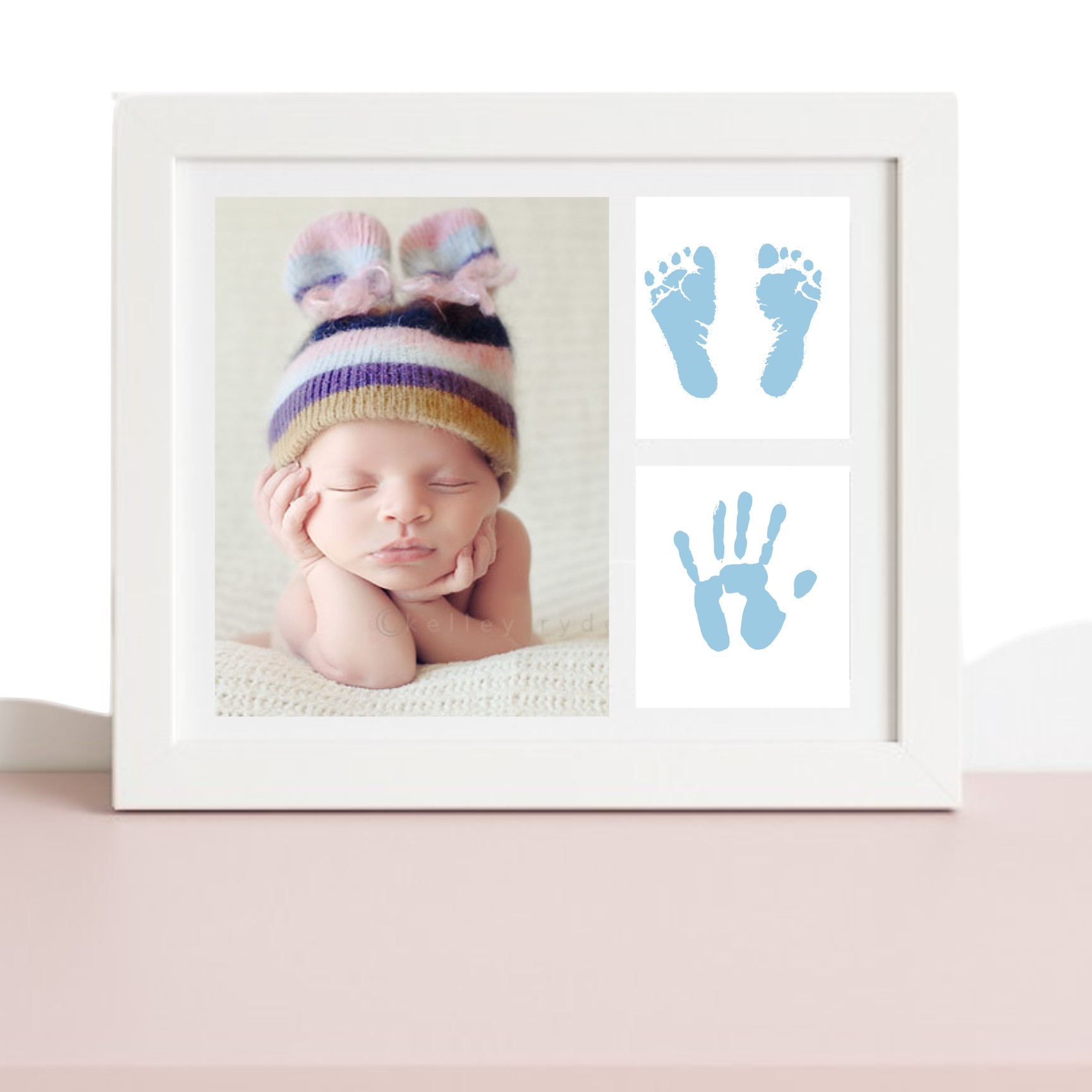 Color: rosa | azul. Crea tu recuerdo para todo la vida, incluyendo una foto de tu bebe y sus huellas de nacimiento. Un hermoso regalo para los papás que los hará muy felices..