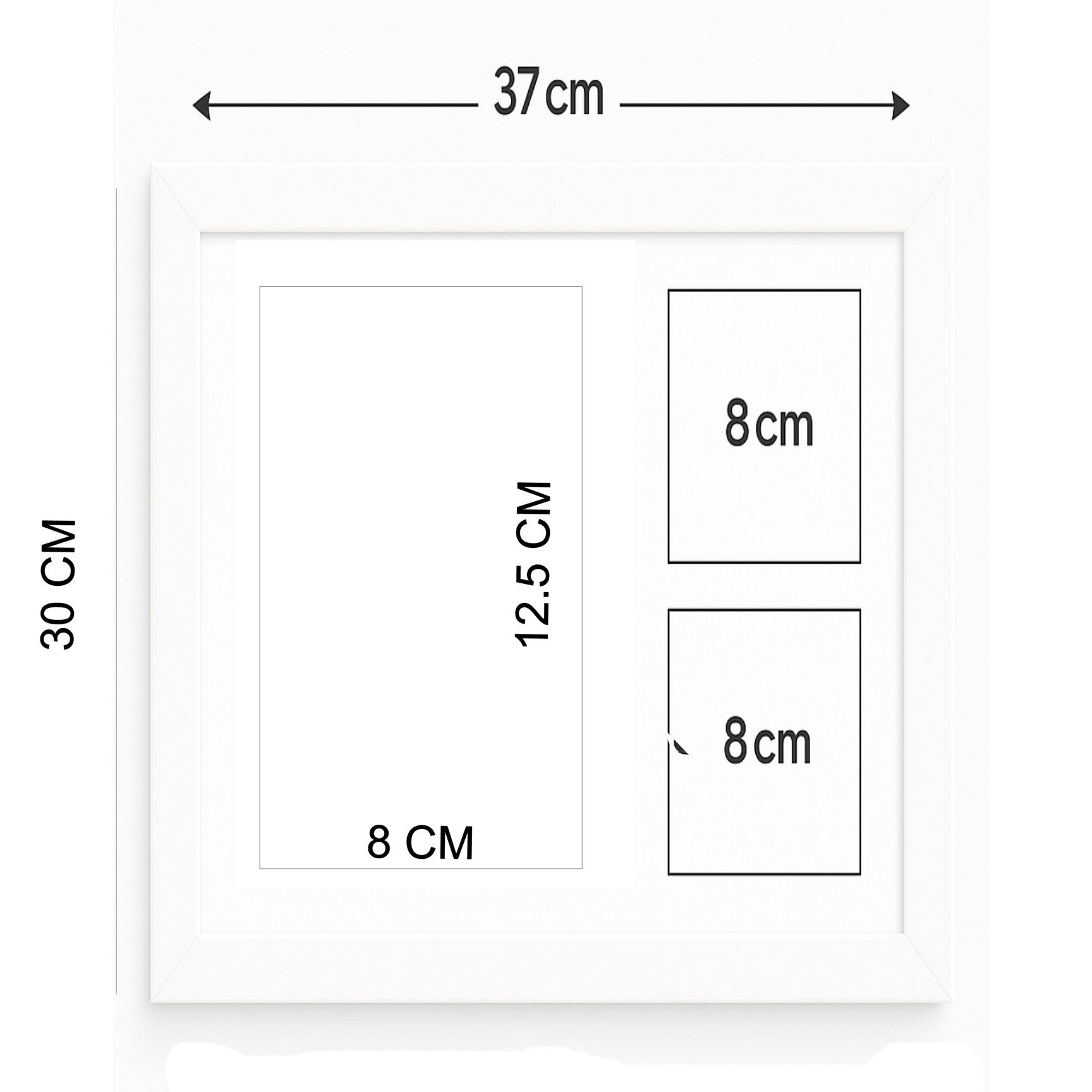 Cuadro de madera lacada en blanco con papel, paspartus y acetato transparente. Todo preparado para aplicar las huellas.