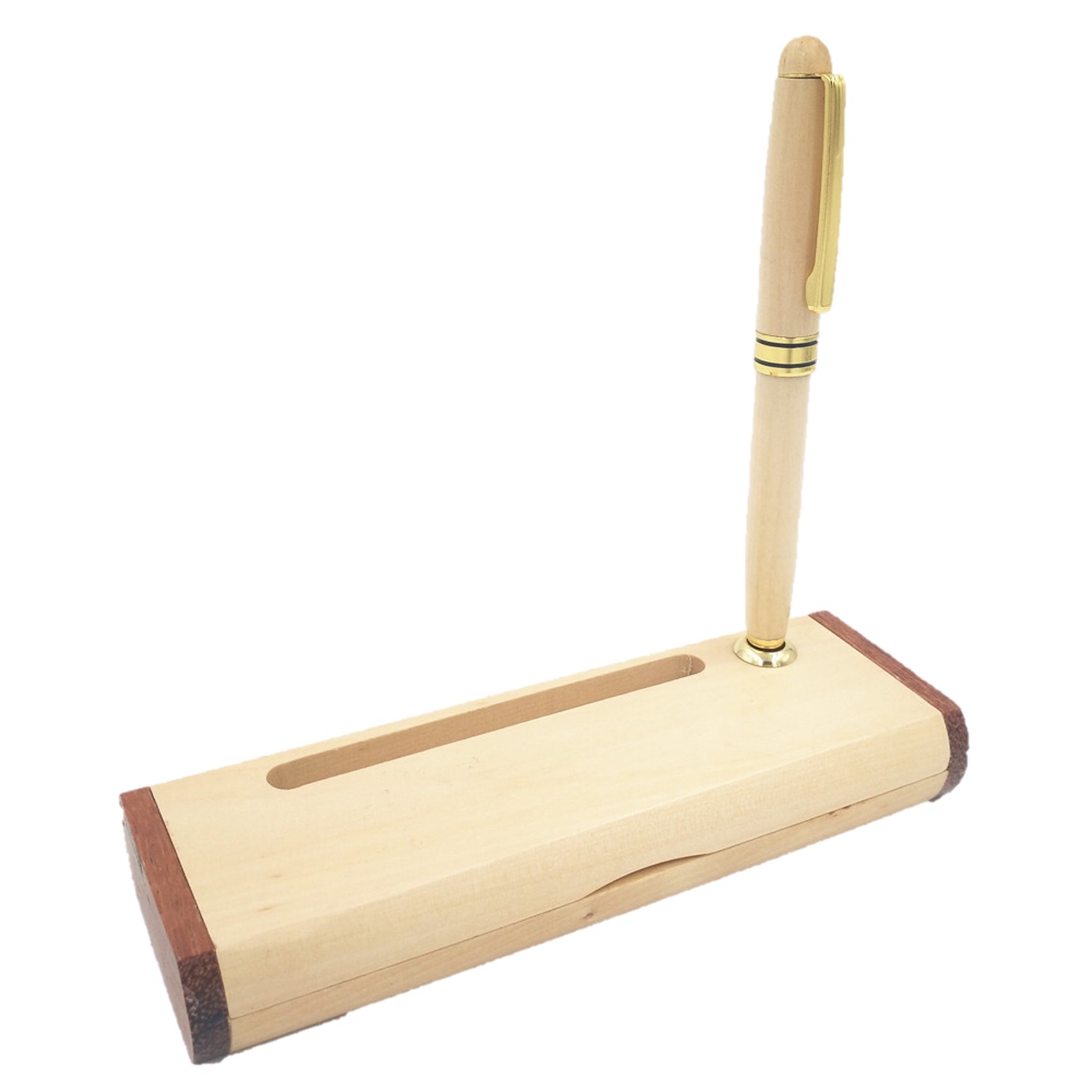 • Bolígrafos con estuche de madera de arce.  Los bolígrafos son de tinta azul.
