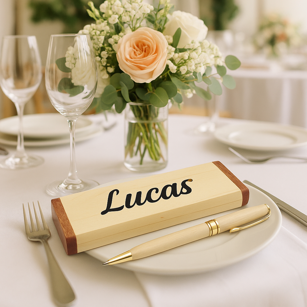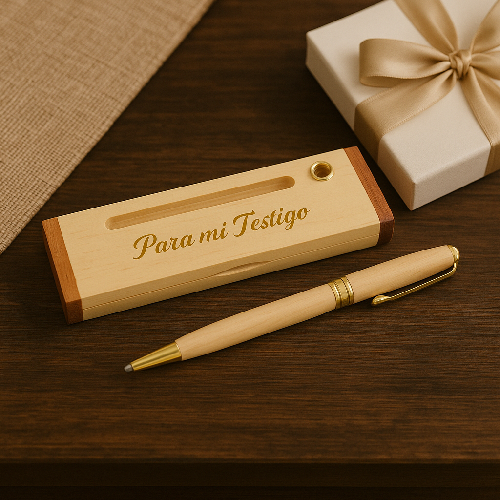 Regalo Comunión Niño Niña – Bolígrafos Personalizados. Bolígrafo de madera con caja a juego, tinta azul. Modelo soporte